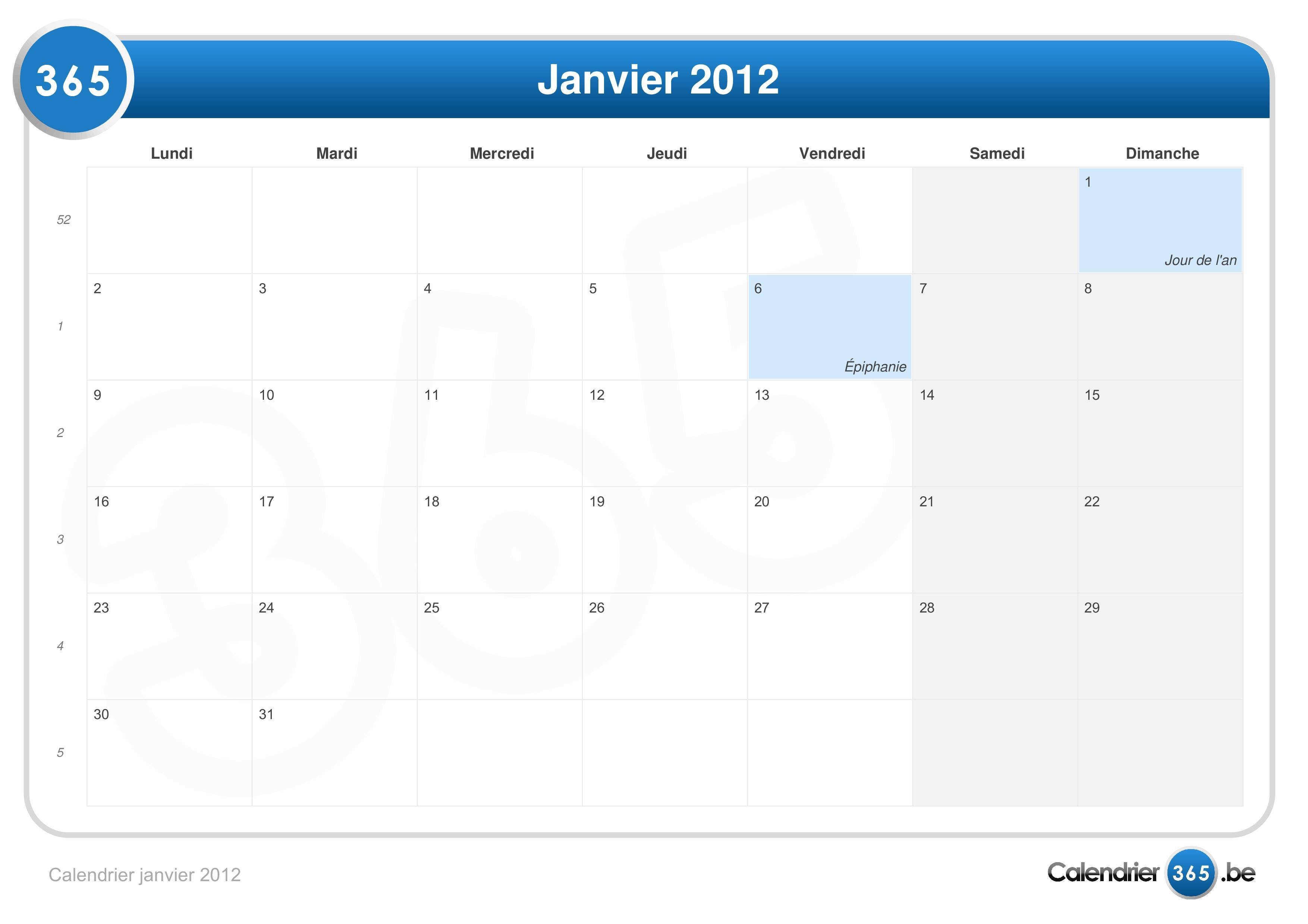 Calendrier January 2012 (Format paysage)Aller au Calendrier 2012.