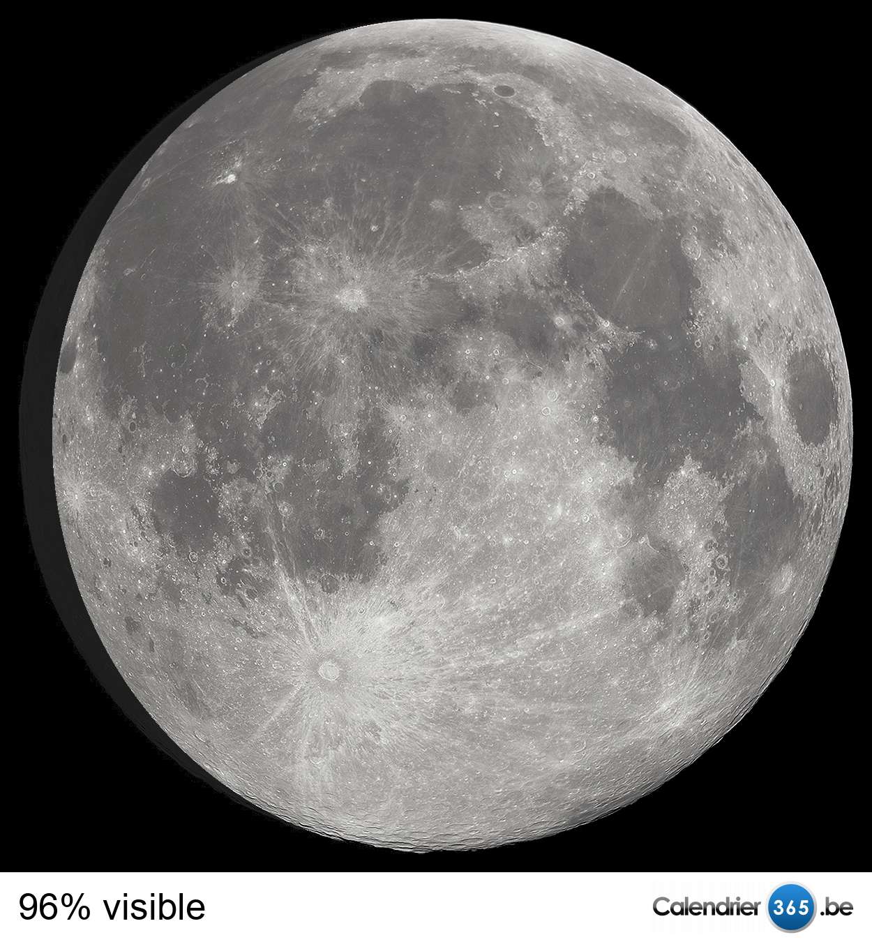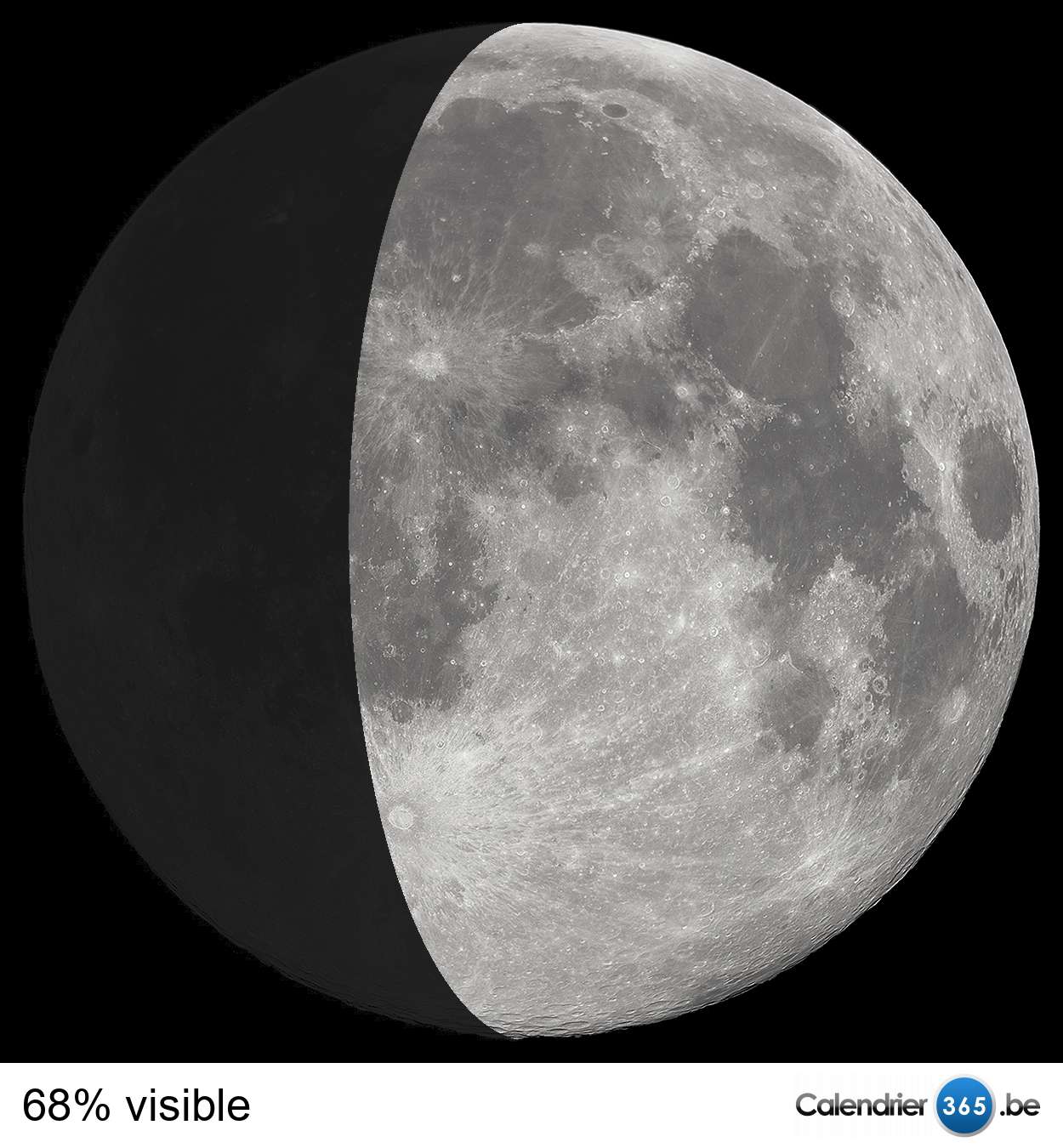 Regardez ici la phase lunaire actuelle. Le pourcentage de visibilité de la lune est mentionné en dessous de l’image.
